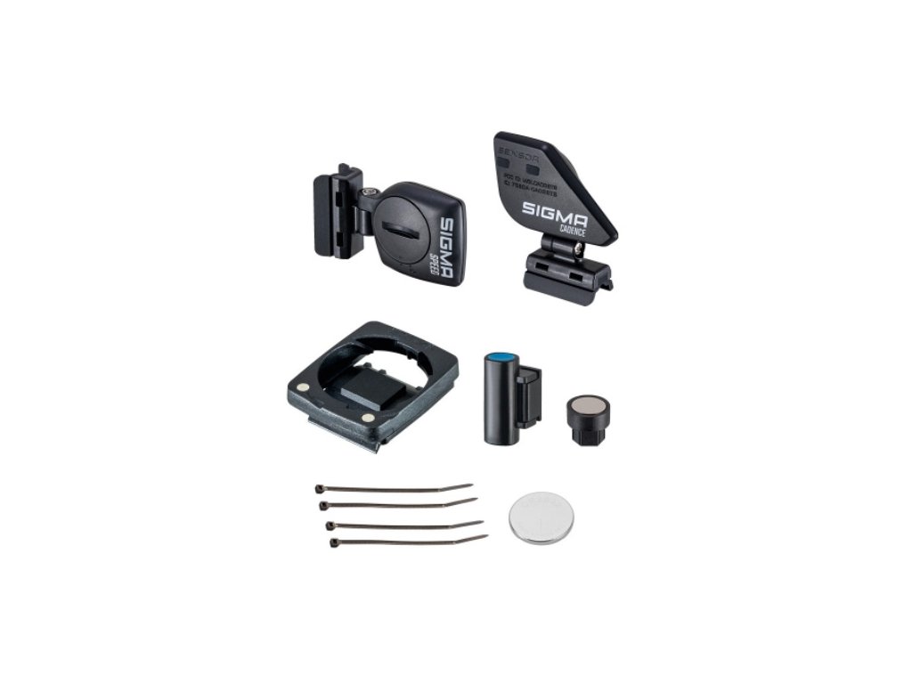 obsah balení: cyklopočítač včetně baterie, držák pro bezdrátový model, STS vysílač, magnet, upevňovací materiál, návod k použití