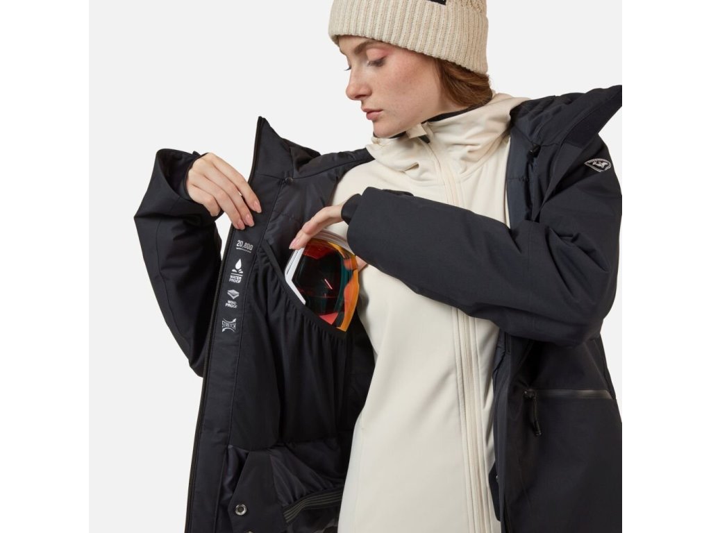 Ze svahu do prašanu.Ať už lyžujete kdekoli, dámská zateplená lyžařská bunda Rossignol Rochrun v elegantní černé barvě vyvažuje teplo a spolehlivou ochranu před bouří s čistým, moderním stylem a ležérním střihem, který ladí s vašimi lyžařskými kalhotami nebo kalhotami dle vašeho výběru. Prodyšná izolace PrimaLoft® utěsní v horku pro pohodlnou chůzi v chladných dnech a voděodolná, prodyšná membrána utěsní proti větru a vlhkosti za všech podmínek. Vestavěná strečová vrstva podporuje přirozenou pohyblivost, takže se můžete ohýbat a dosahovat sportovních výkonů bez omezení. Mezi detaily určené pro lyžaře patří strečové manžety s poutky na palec, větrací otvory na zip a voděodolný zip. Ať už lyžujete na upravených tratích nebo prozkoumáváte nové freestylové sjezdovky, je to horský partner, na kterého se můžete spolehnout, že vám poskytne teplo a pohodlí, abyste mohli lyžovat více. .- Střih je klasický s trochu větším prostorem pro pohodlí, který umožňuje volnost pohybu a vrstvení., 20 000/20 000 voděodolná/prodyšná membrána. Zůstaňte v suchu a pohodlí i v hustém sněžení nebo dešti., Lehká, prodyšná a recyklovaná izolace. Prodyšná izolace Primaloft® Black vás udrží v teple i ve vlhkých podmínkách a je vyrobena ze 100% recyklovaných plastových lahví. Certifikace GRS (globální recyklační standard)., Izolace 100 g/80 g. Zateplení, které je teplejší na těle a lehčí na rukávech, takže se budete cítit pohodlně i při nízkých teplotách a zároveň budete mít možnost přirozeného pohybu., Plně podlepené švy. Všechny švy jsou podlepeny, aby se vytvořilo co nejúplnější utěsnění proti větru, sněhu a dešti., Volnost pohybu. Materiál obsahuje přesně tu správnou míru streče pro přirozený pohyb., Detaily určené pro lyžaře. Detaily, jako je integrovaný sněhový pás, manžety s poutky na palec a větrací otvory na zip, rozšiřují vaše pohodlí., Vodoodpudivý materiál bez PFC. Má odolnou vodoodpudivou (DWR) vrstvu, která odpuzuje lehký sníh a déšť bez použití toxických chemikálií., Recyklované materiály. Vyrobeno z recyklovaných materiálů, které pomáhají snižovat spotřebu surovin.