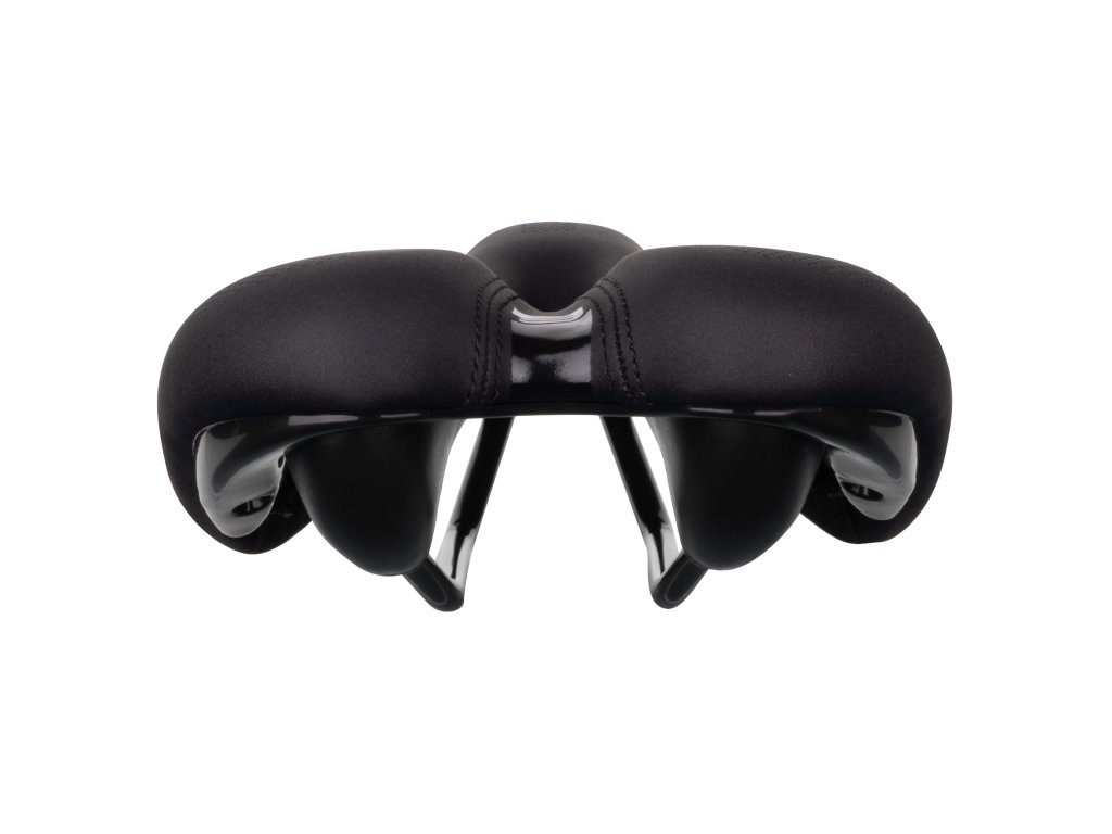 Pohodlné pánské sedlo ploššího tvaru vhodné například na cykloturistiku a městská kola.